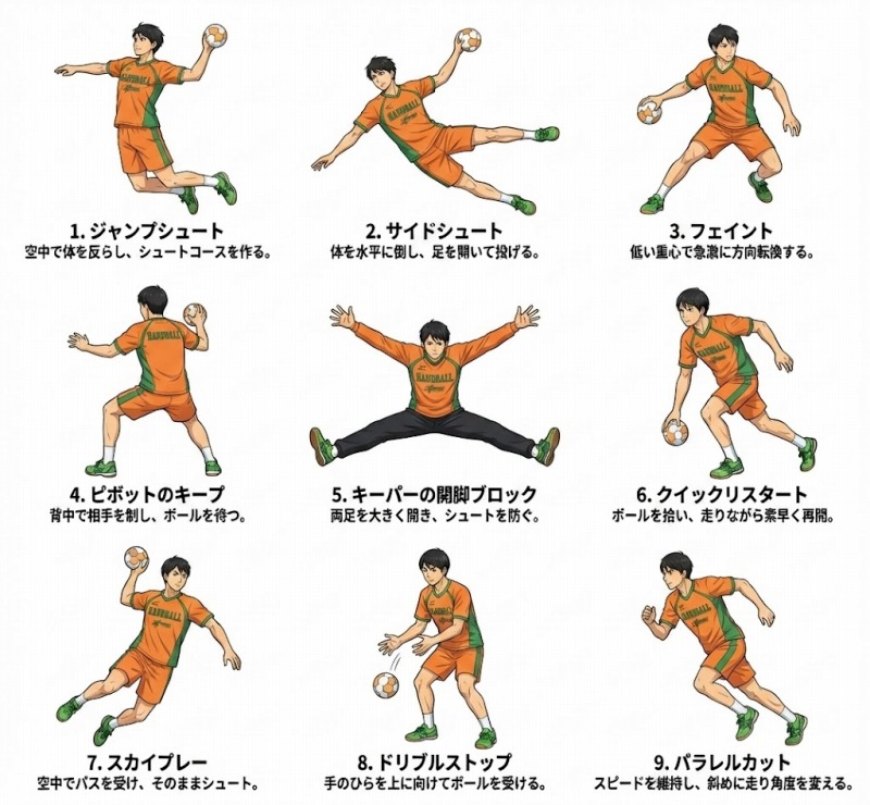 以下に、『ハンドボール上達革命』に含まれる練習内容の一部をまとめました。